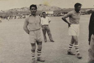 Bem, o futebol sempre foi uma grande paixão, em pequeno ia ver os outros jogar, ainda no antigo campo do Fontes e mais tarde quando comecei a jogar era na Junqueira. Eu jogava à baliza e até me ajeitava mais ou menos. Nesse tempo ao domingo íamos às 8,30 horas para lá e ficávamos a jogar até às 13 horas. Jogávamos uns com os outros, mas também se ia jogar com outras terras, cá e lá. Havia rapazes com muita habilidade como o Chico Glória, o Quim Chiquita, o Né Glória>, esse “malandro” tinha cá um pontapé, com aquele pé esquerdo até queimava nas nossas mãos. Os de Esposende nessa altura tinham uma grande equipa, mas muitas vezes lhe ganhávamos.